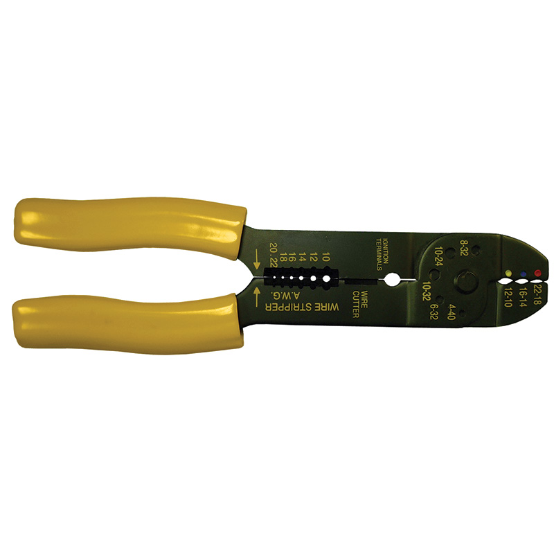 Pince à dénuder pour fils non isolés, isolés et d'allumage de calibre 22 à 10. Outil de sertissage pour raccords non isolés et isolés. Avec poignées en vinyle qui offre un confort et facilite le sertissage.