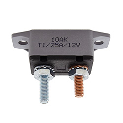 Circuit breaker automatically resets after opening. If the fault still exists, the breaker will continue to cycle between on and off positions until the overload is corrected. Meets SAE J553 and J1171.