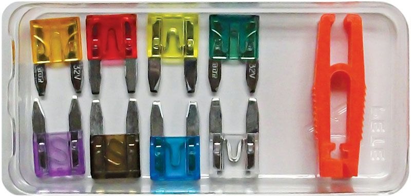 An assortment of MIN Blade Fuse with Puller. 8 Different Fuses between 3-30A.