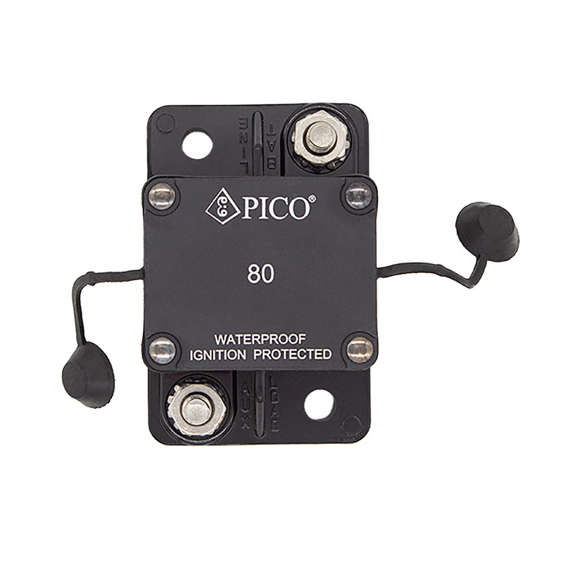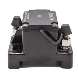 Circuit Breaker automatically resets after opening. If the fault still exists, the breaker will continue to cycle between the on and off positions until the overload is corrected. IP67 Approved 48V DC.