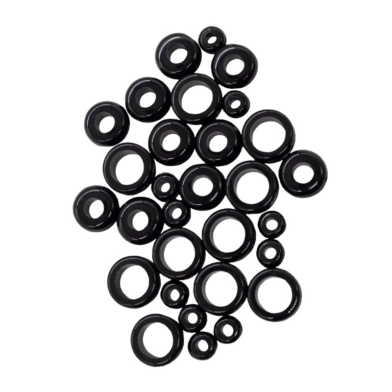 An assortment of flexible oil resistant Grommets, ranging in size from 1/8” to 1/4”. Insert into pre-drilled holes to guard against cut or frayed wires.