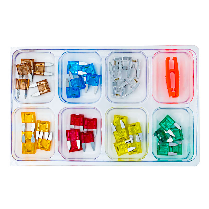 When the fuse blows, the LED glows. Operates at low temperatures and draws low current. Ideal for sensitive electronics in automotive, DC motors, audio equipment, and industrial machinery. 7 Different Fuses between 5-30 Amps with a puller.