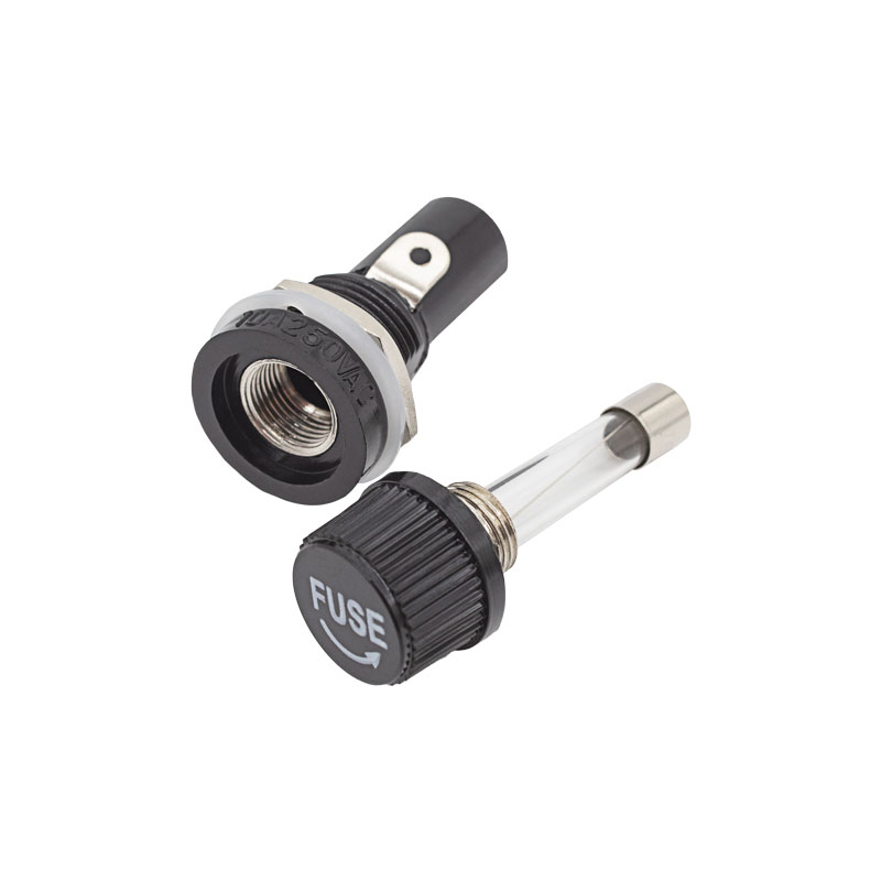 Protects circuits electrical systems. Panel Mount Glass Fuse holder protects circuits in electrical systems. Fits AGC & JSO. * Fuse not included.